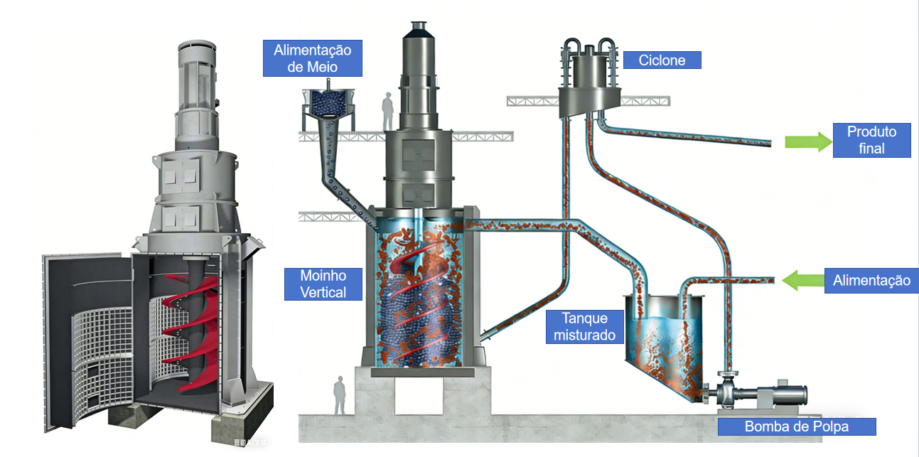 Além do agitador e do revestimento do cilindro, o sistema também inclui um suporte de transmissão e eixo de transmissão principal, unidade de acionamento, tanque misturador e bomba de polpa e hidrociclone.