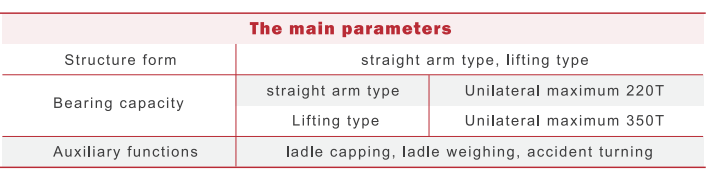 A principal função da torre giratória de panela é transferir a panela da máquina de lingotamento contínuo.